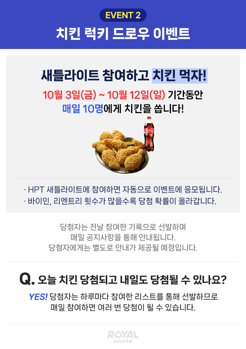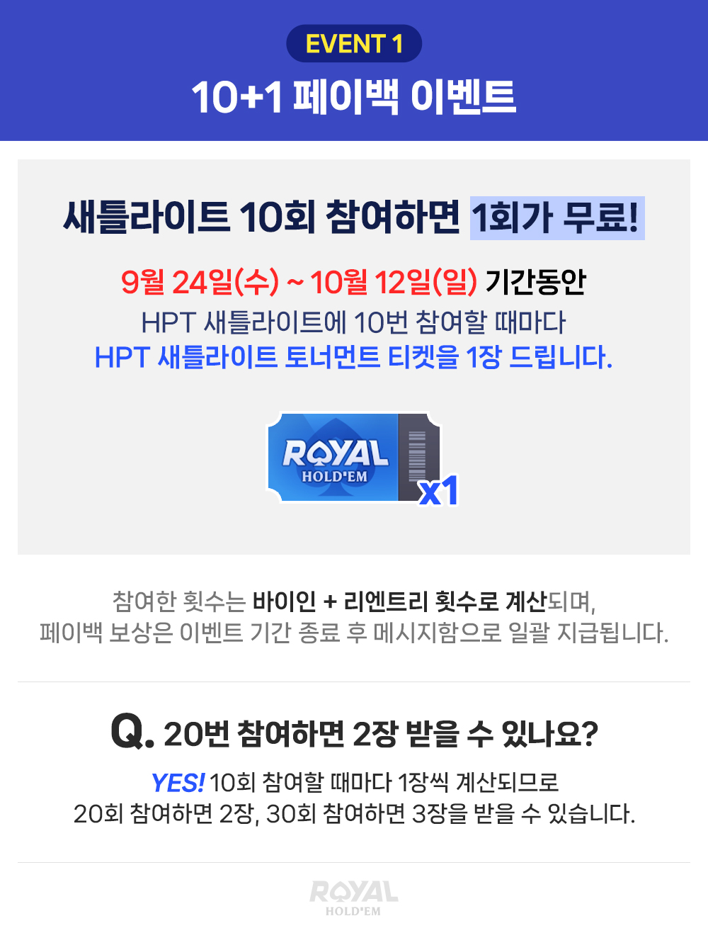 로얄홀덤이 준비한 HPT 새틀라이트를 즐겨주신 플레이어분들께!
