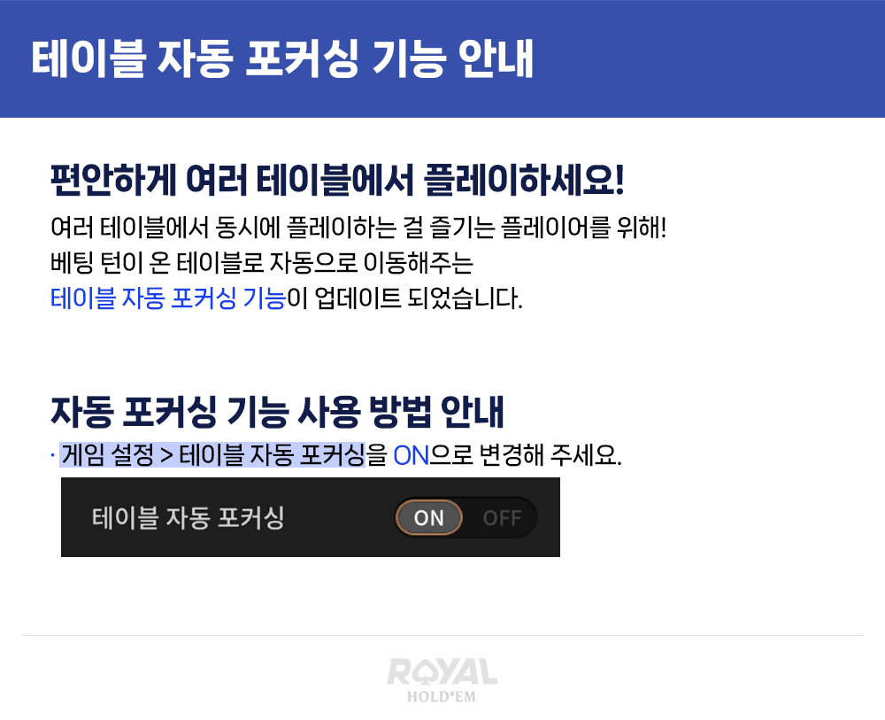 여러 테이블에 동시에 플레이하는 걸 즐기는 플레이어를 위해!