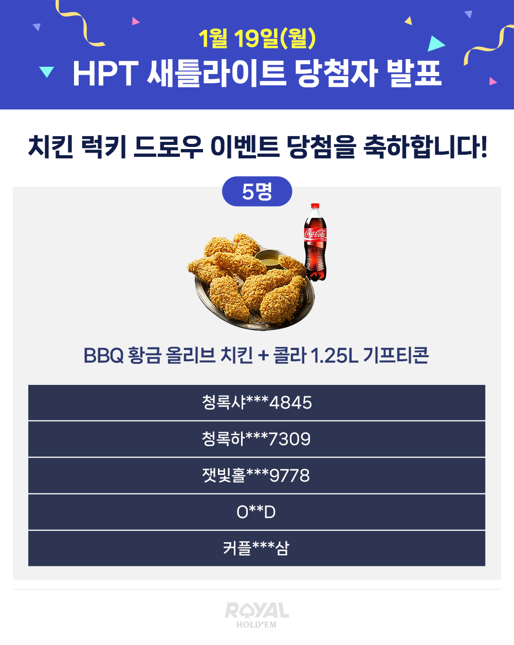 [당첨자발표] 1/19 HPT 치킨 럭키 드로우 당첨자 발표