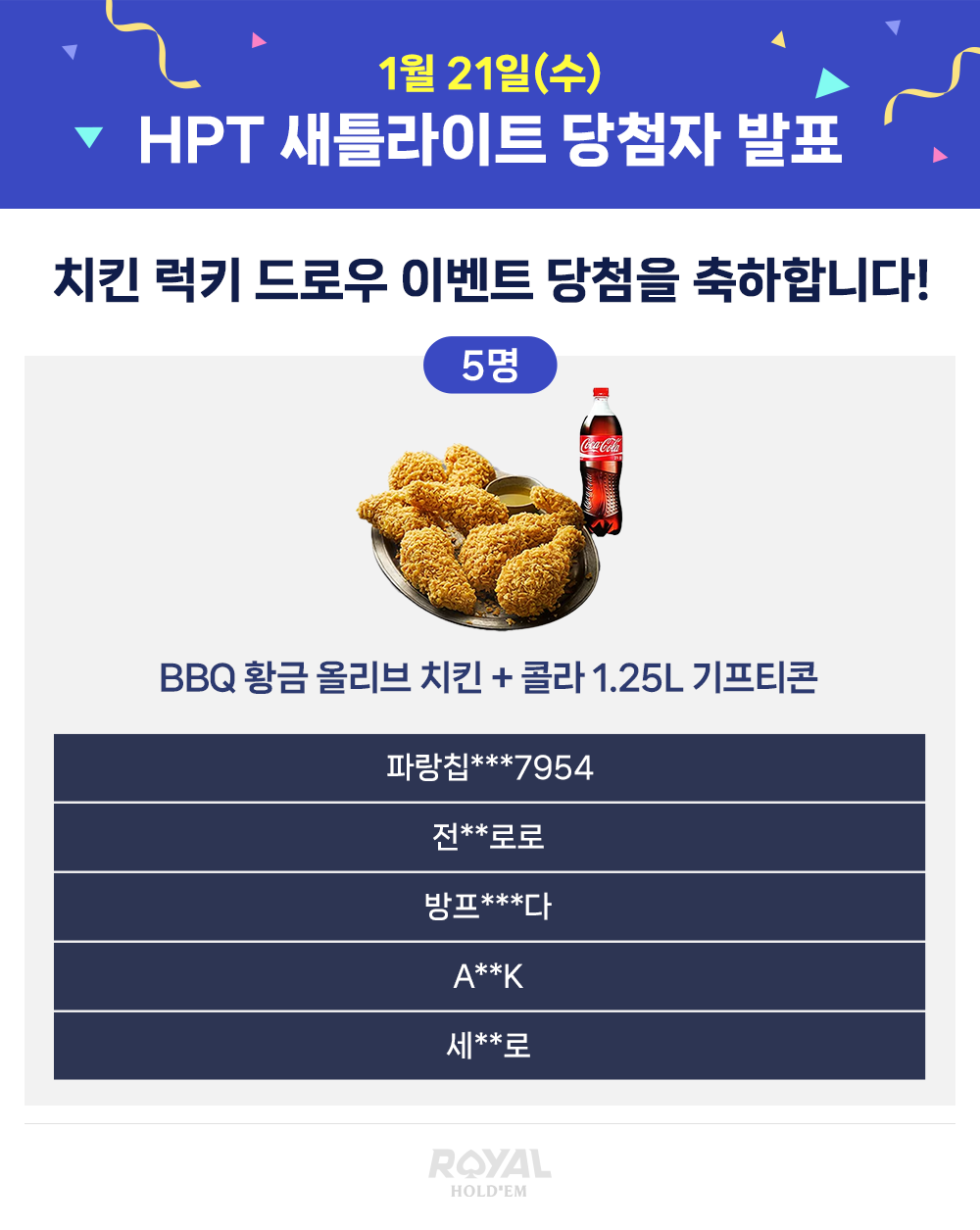 [당첨자발표] 1/21 HPT 치킨 럭키 드로우 당첨자 발표